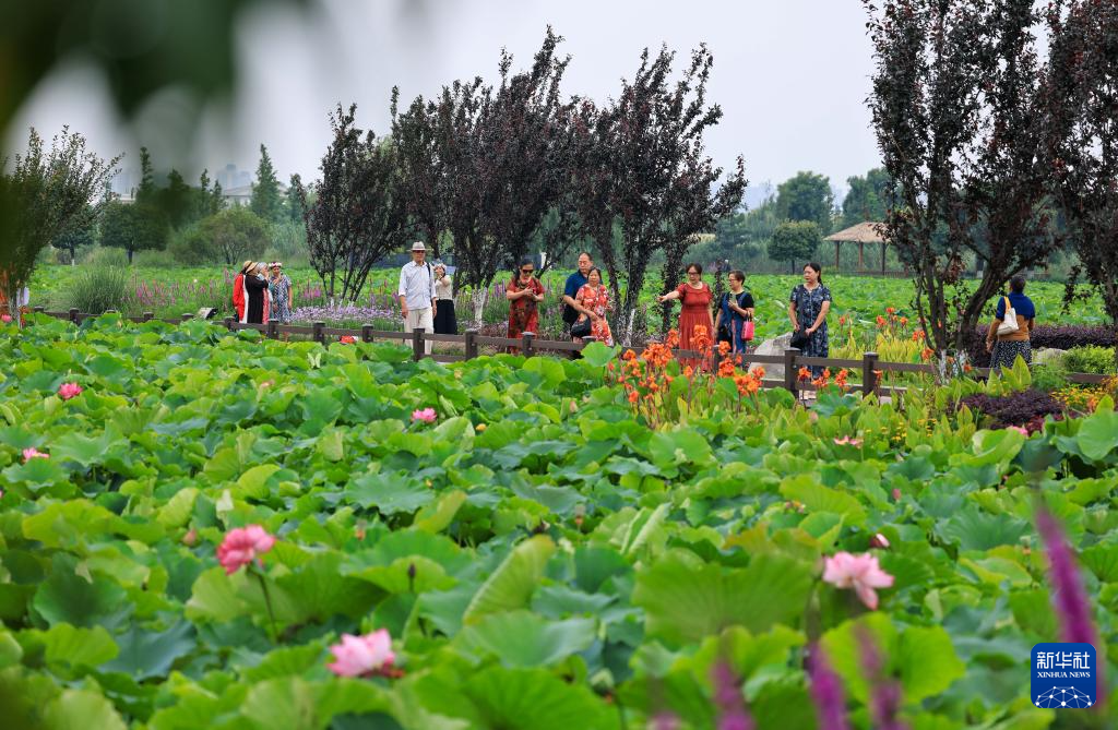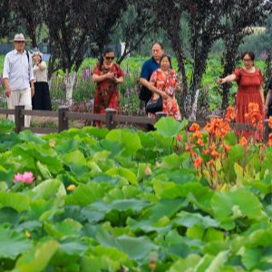 7月12日,游客在云南省曲靖市麒麟區沿江街道麒麟水鄉賞景游玩。