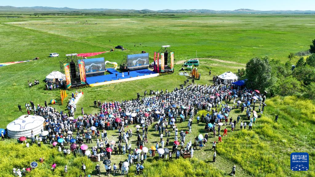 7月13日,2025正藍旗金蓮花旅游季開幕式在內蒙古錫林郭勒盟正藍旗金蓮川草原舉行(無人機照片)。