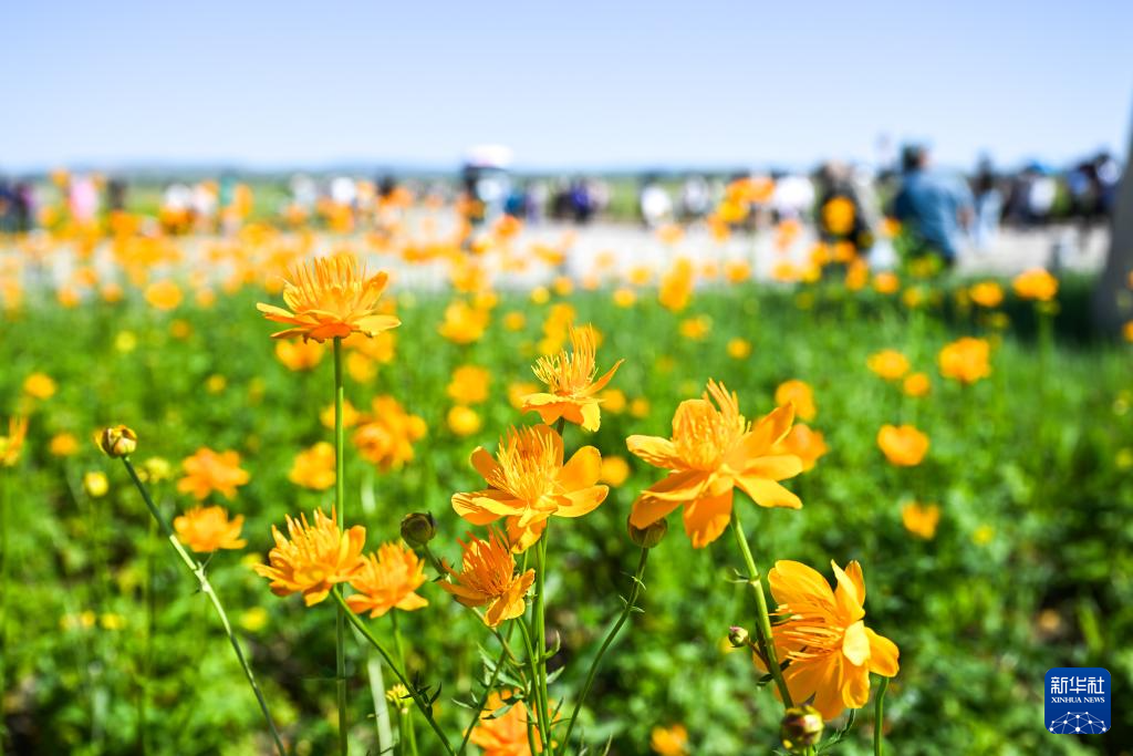 7月13日在內蒙古錫林郭勒盟正藍旗金蓮川草原拍攝的金蓮花。