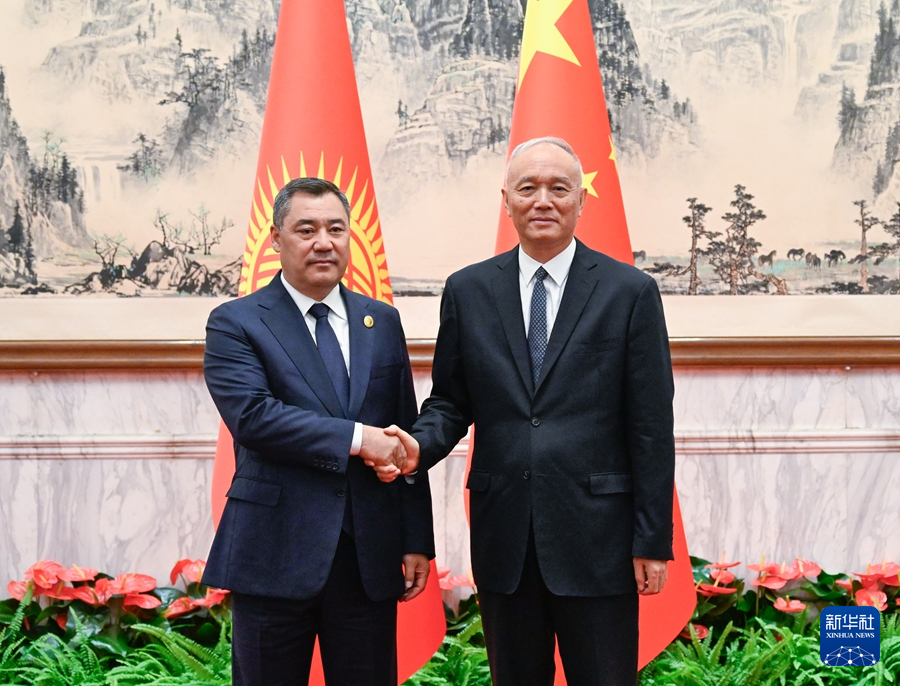 9月3日,中共中央政治局常委、中央書記處書記蔡奇在北京會見來華出席2025年上海合作組織峰會和紀念中國人民抗日戰爭暨世界反法西斯戰爭勝利80周年活動的吉爾吉斯斯坦總統扎帕羅夫。