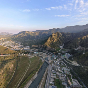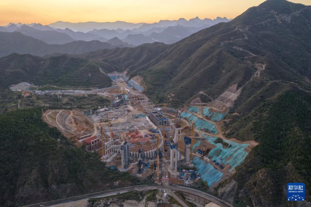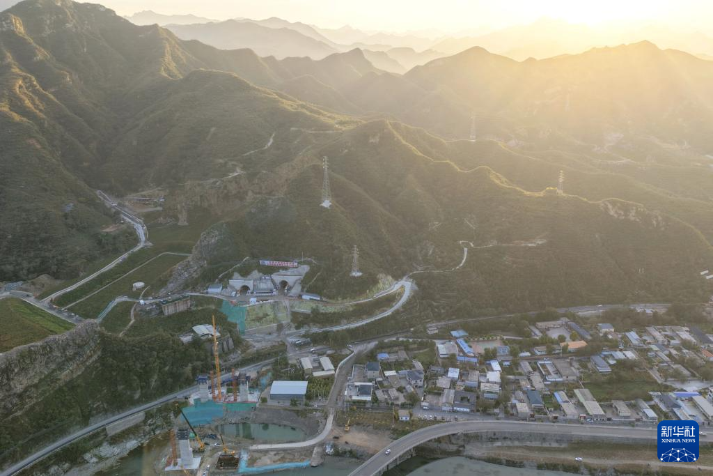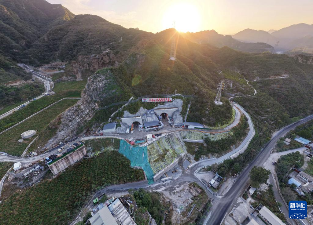 9月29日拍攝的北京108新線高速公路房山段黑龍關隧道施工現場(無人機照片)。