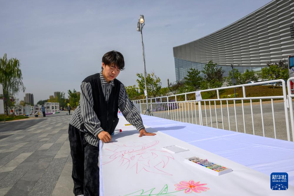 10月1日,市民在藝術季上參與城市畫布·街頭共創計劃。