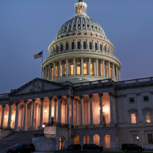 這是9月30日黃昏時分在美國首都華盛頓拍攝的美國國會大廈。
