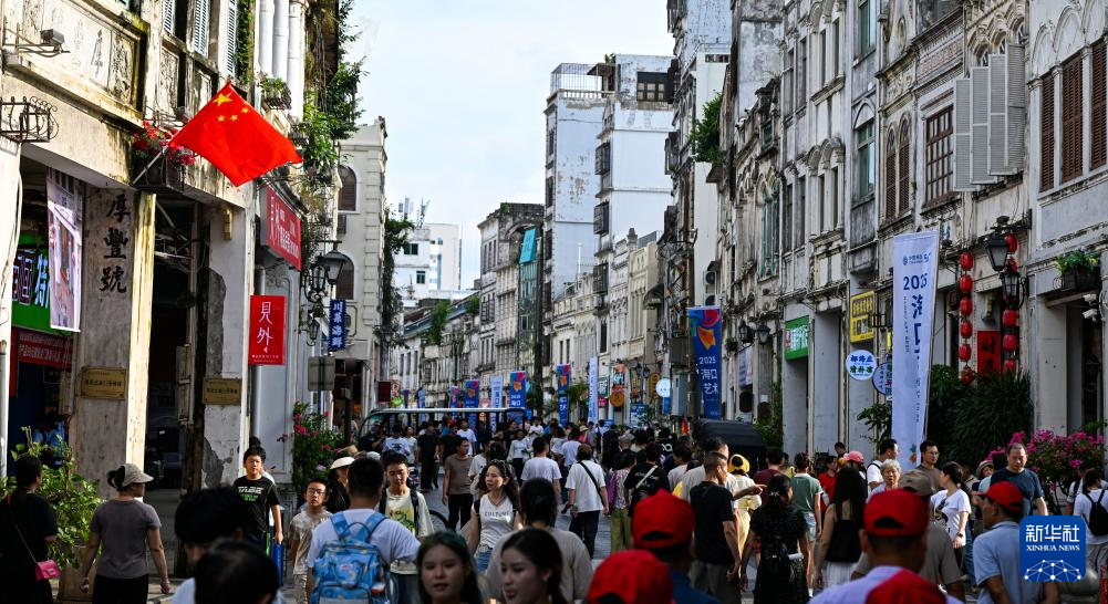 10月1日,在海口騎樓老街,海口市藝術團開展惠民演出。