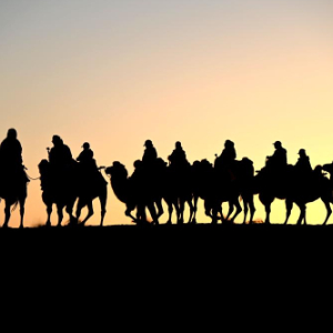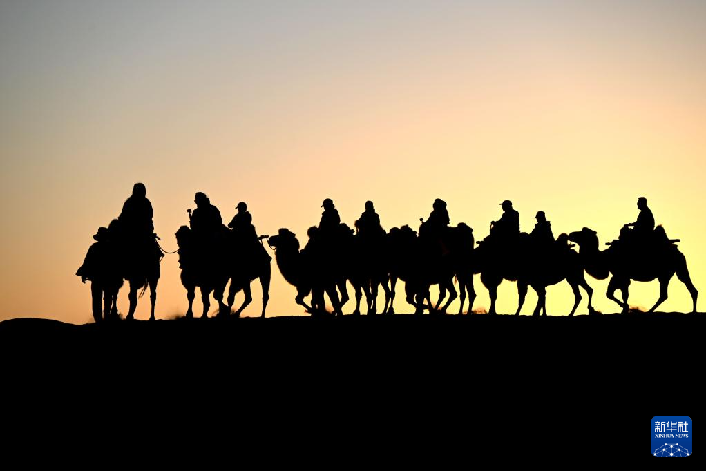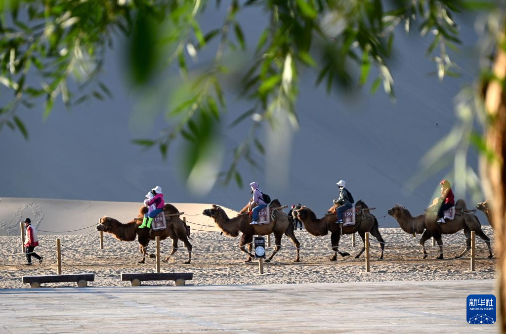 10月1日,游客在甘肅省敦煌市鳴沙山月牙泉景區游覽。