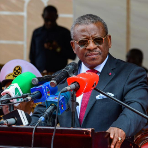 9月30日,在喀麥隆首都雅溫得,喀總理恩古特在公共工程部辦公大樓揭牌儀式上致辭。