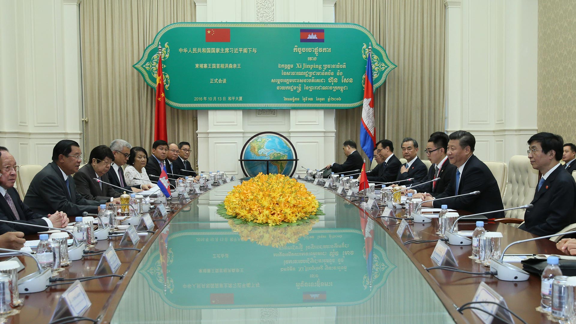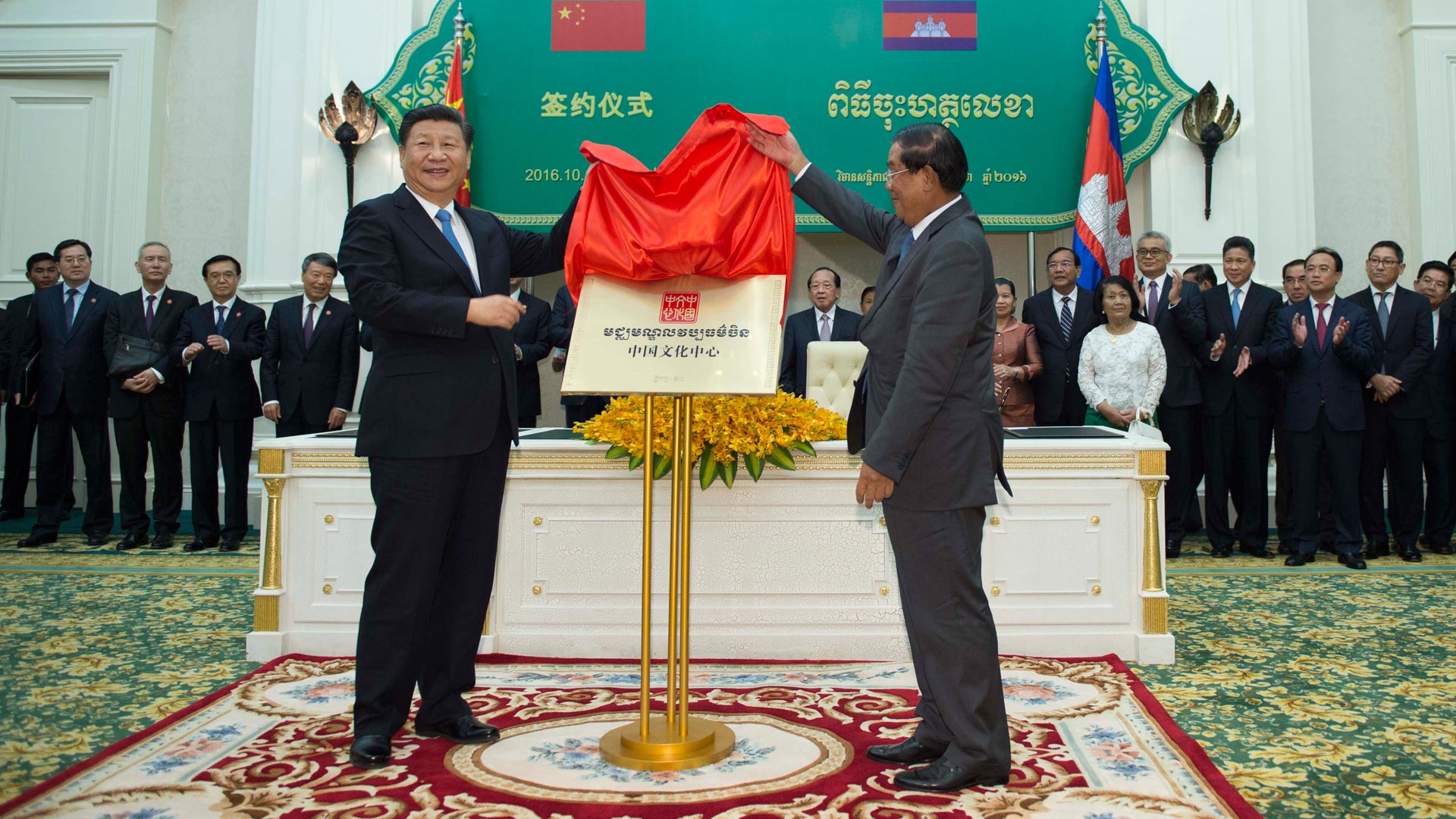 10月13日(ri),國家主(zhu)席習(xi)近平(ping)在金邊同柬(jian)埔(pu)寨首相洪森舉行會談(tan)。會談(tan)后,兩國領導人共同出(chu)席金邊中國文化中心揭(jie)牌儀式。 新(xin)華社記者 謝環(huan)馳 攝