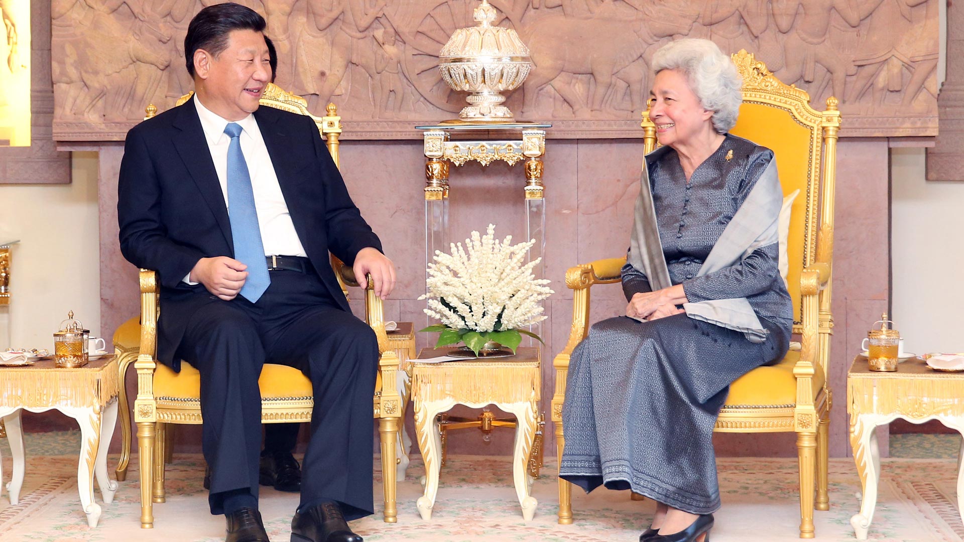 10月13日,國家主席(xi)習近平(ping)在(zai)金(jin)邊(bian)看望柬埔寨太后莫尼(ni)列。新華社記者 姚大偉 攝