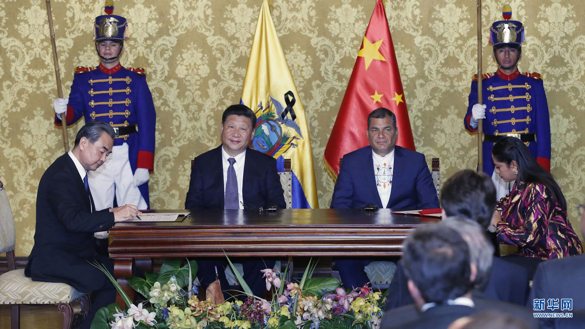 當地時間11月18日,國家主席習近平在基多同厄瓜多爾總統科雷亞共同出席中方援建的厄瓜多爾公共安全應急指揮中心聯合實驗室揭牌儀式,喬內醫院奠基、科卡科多-辛克雷水電站竣工發電視頻連線活動。這是習近平出席活動后致辭。新華社記者 馬占成 攝2016-11-19