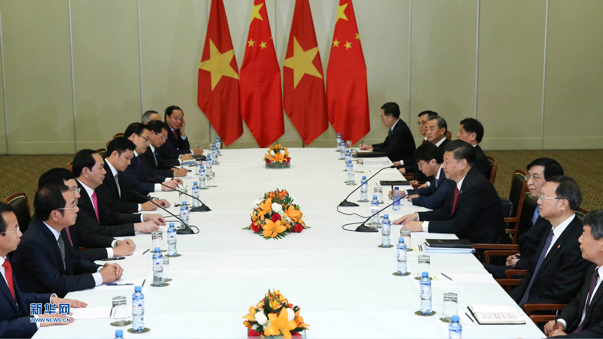 11月19日,國家主席習近平在利馬會見越南國家主席陳大光。新華社記者 龐興雷 攝2016-11-20