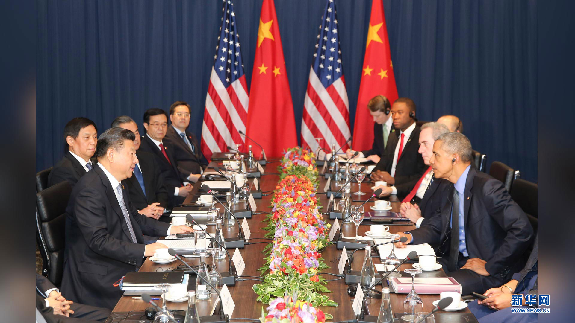 11月19日,國家主席習近平在利馬會見美國總統奧巴馬。 新華社記者丁林 攝2016-11-20