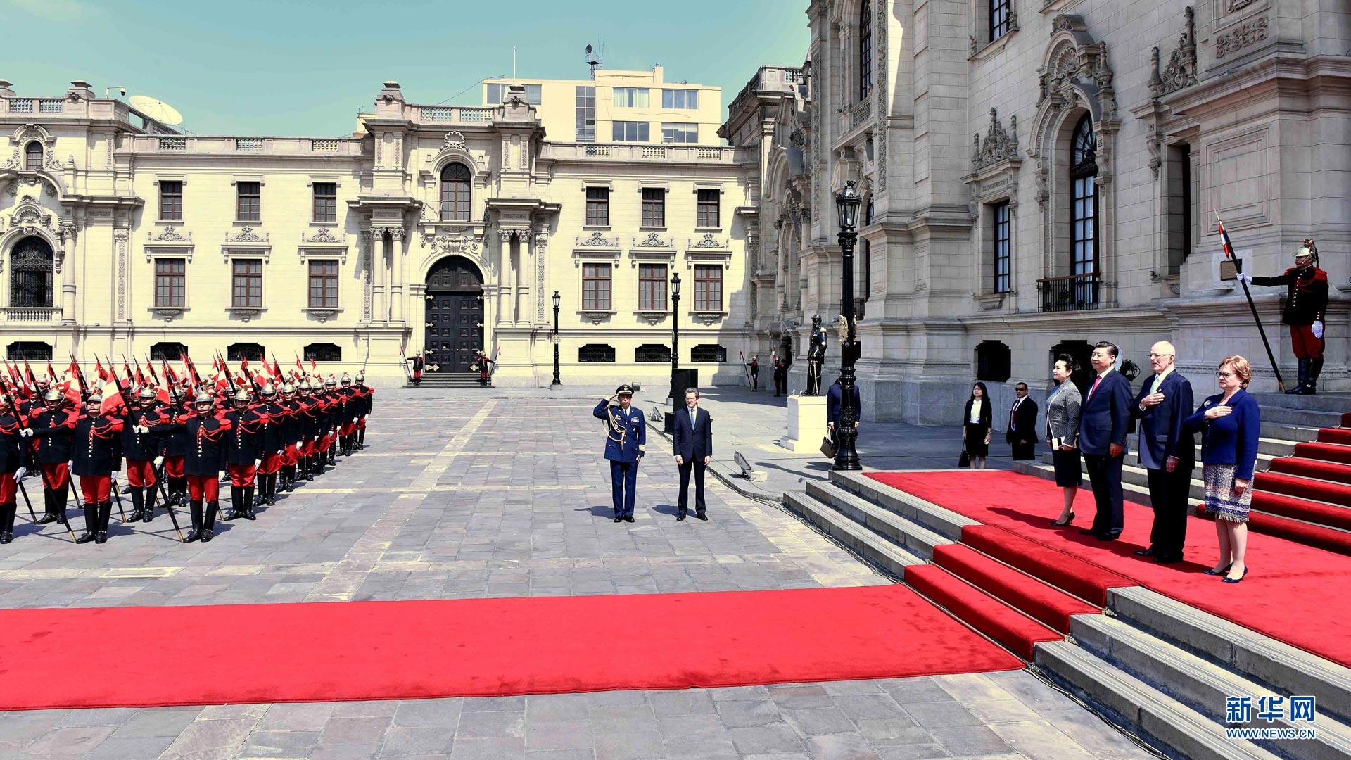 11月21日,國家主席習近平在利馬同秘魯總統庫琴斯基舉行會談。會談前,習近平出席庫琴斯基在總統府前廣場舉行的歡迎儀式。新華社記者 李濤 攝2016-11-23