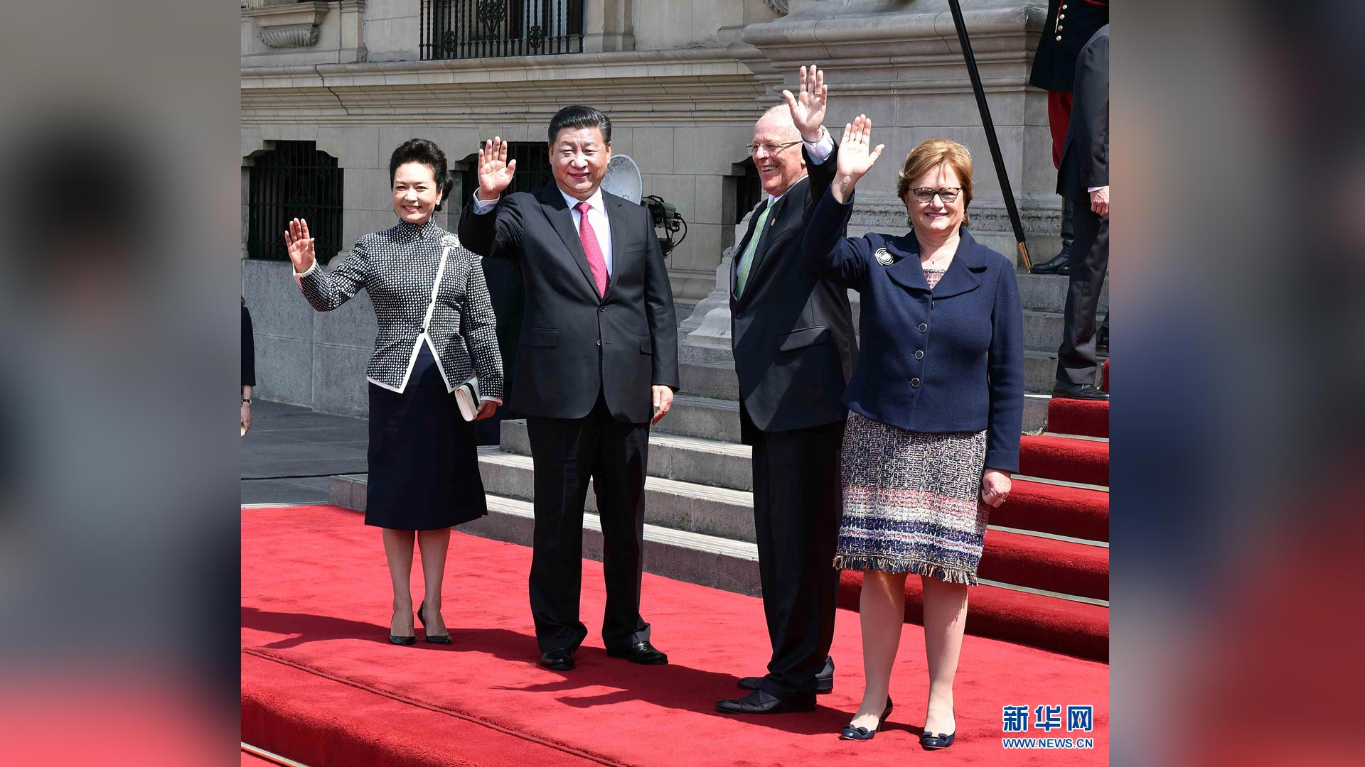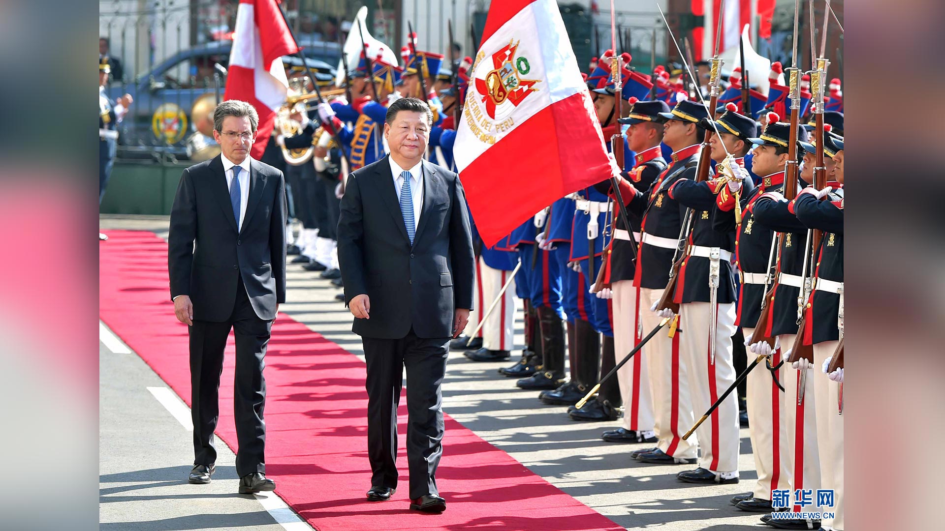 11月21日,國家主席習近平在利馬同秘魯總統庫琴斯基舉行會談。會談前,習近平出席庫琴斯基在總統府前廣場舉行的歡迎儀式。 新華社記者李濤 攝2016-11-23