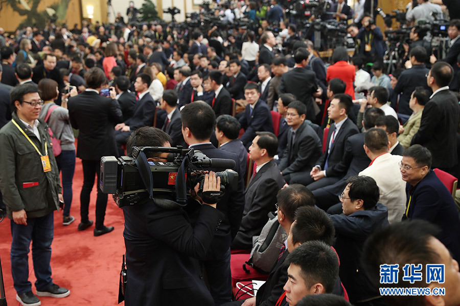 中外記者在見面會現場進行準備工作-新華網