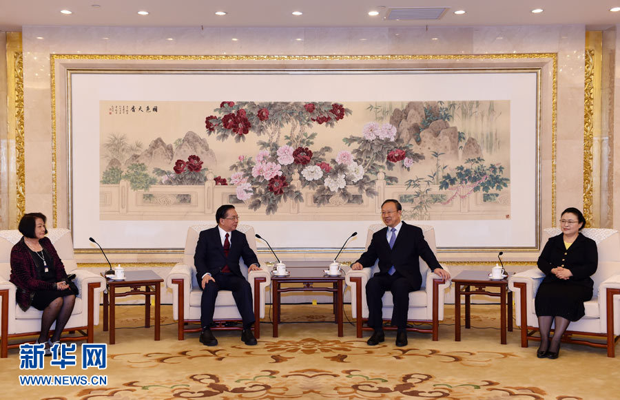??? 11月2日,中共中央書記處書記、全國政協副主席、中國經濟社會理事會主席杜青林在北京會見臺灣非營利組織代表大陸交流團。 新華社記者 張領攝