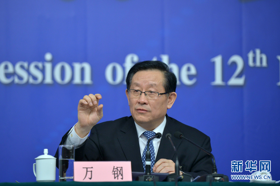 十二屆全國人大三次會議新聞中心于3月11日10時45分舉行記者會,邀請科技部部長萬鋼就科技改革與發展回答中外記者提問。圖為萬鋼回答記者提問。新華網/中國政府網 郭小天 攝