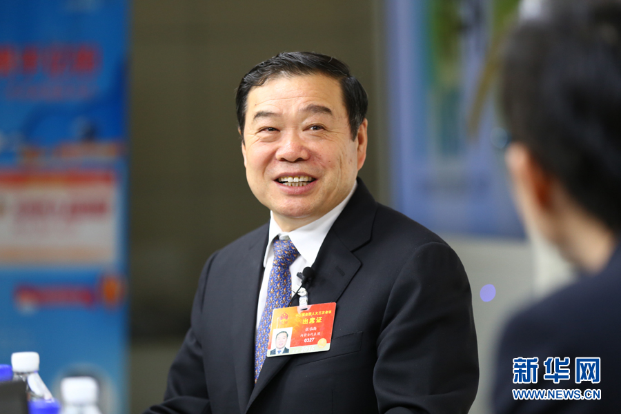 ??? 2015年3月13日,全國人大代表、內蒙古森工集團董事長張學勤做客新華會客廳。圖為張學勤在訪談中。新華網 李江 攝