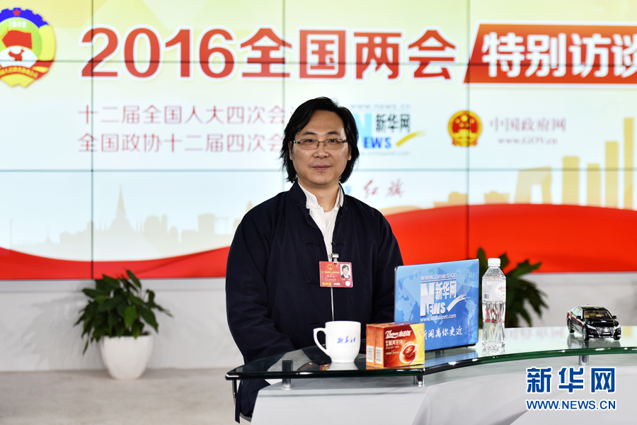 3月13日,全國人大代表、中國文聯全委、中國音樂家協會副主席,上海音樂家協會副主席、上海音樂學院副院長廖昌永做客新華網2016全國兩會特別訪談,與新華網網友在線交流。圖為廖昌永在訪談現場。新華網 郭小天 攝