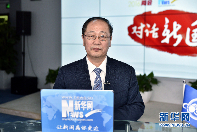 2016年3月13日,全國政協委員,中國航天科工集團公司副總經理魏毅寅做客新華網兩會訪談直播間。圖為魏毅寅在訪談現場。新華網 付宇鵬 攝