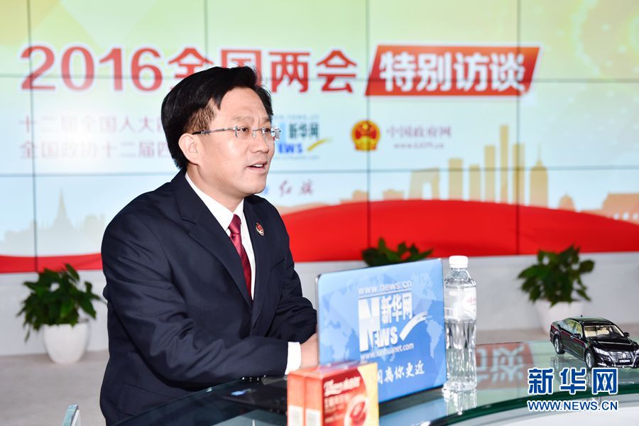 ????2016年3月13日,最高人民檢察院辦公廳主任、新聞辦主任王松苗做客新華網兩會訪談直播間。圖為王松苗在訪談現場。新華網 付宇鵬 攝