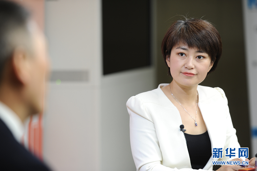 ??? 2016年3月13日,全國人大代表,煙臺張裕葡萄釀酒股份有限公司總經理周洪江做客新華網兩會訪談。圖為新華網主持人苑茵子。新華網 盧志佳 攝