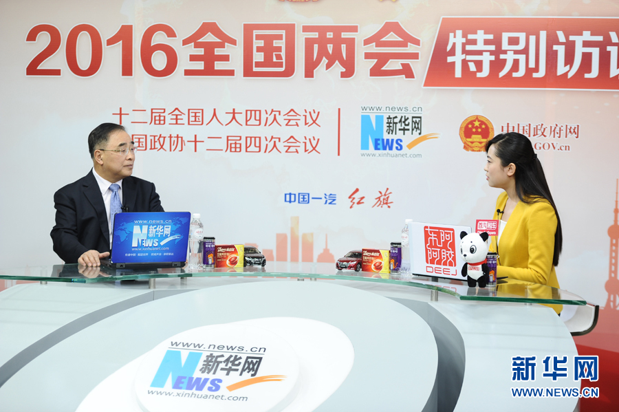 ????2016年3月13日,全國人大代表,天津中醫藥大學校長張伯禮做客新華網兩會訪談直播間。圖為張伯禮在訪談現場。新華網 盧志佳攝