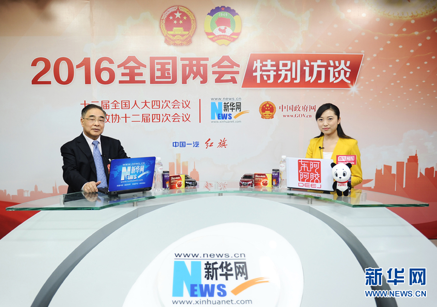 ????2016年3月13日,全國人大代表,天津中醫藥大學校長張伯禮做客新華網兩會訪談直播間。圖為張伯禮在訪談現場。新華網 盧志佳攝