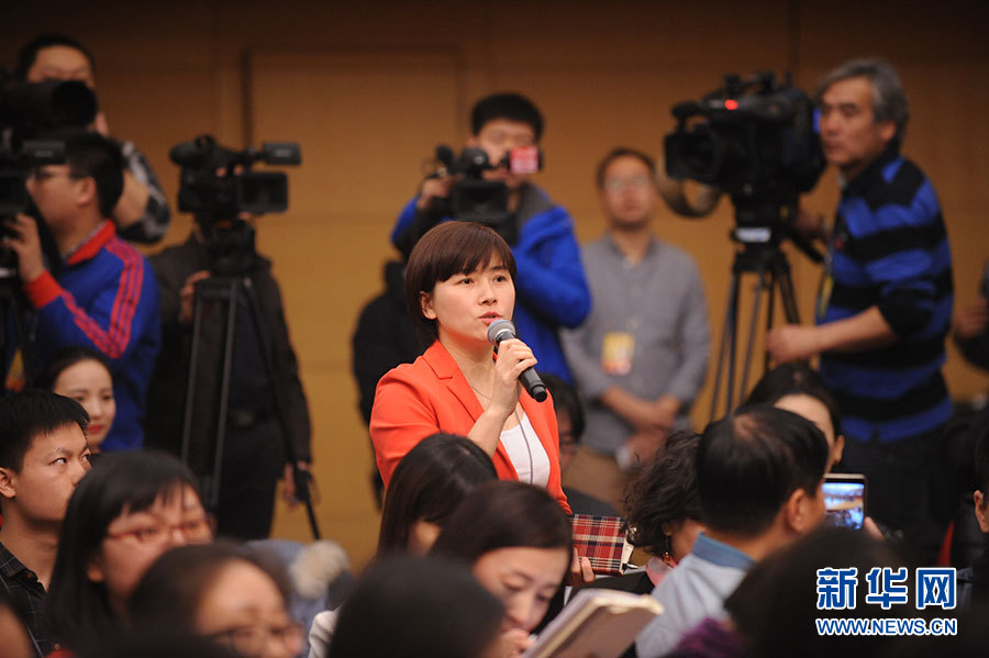 十二屆全國人大四次會議新聞中心于3月15日(星期二)10時在梅地亞中心多功能廳舉行記者會,邀請住房和城鄉建設部部長陳政高、副部長陸克華、副部長倪虹就“棚戶區改造和房地產工作”的相關問題回答中外記者的提問。圖為江蘇新聞廣播記者提問。新華網/中國政府網 陳杰 攝