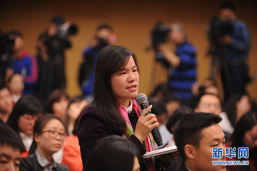 十二屆全國人大四次會議新聞中心于3月15日(星期二)10時在梅地亞中心多功能廳舉行記者會,邀請住房和城鄉建設部部長陳政高、副部長陸克華、副部長倪虹就“棚戶區改造和房地產工作”的相關問題回答中外記者的提問。圖為文匯報記者提問。新華網/中國政府網 陳杰 攝