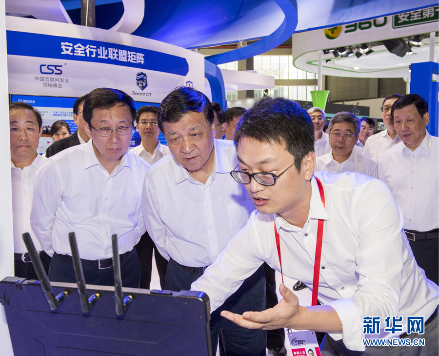 9月16日,2017年國家網絡安全宣傳周開幕式在上海西郊會議中心舉行。中共中央政治局常委、中央書記處書記、中央網絡安全和信息化領導小組副組長劉云山在開幕式上發表講話,并參觀網絡安全博覽會暨網絡安全成就展。新華社記者李學仁攝