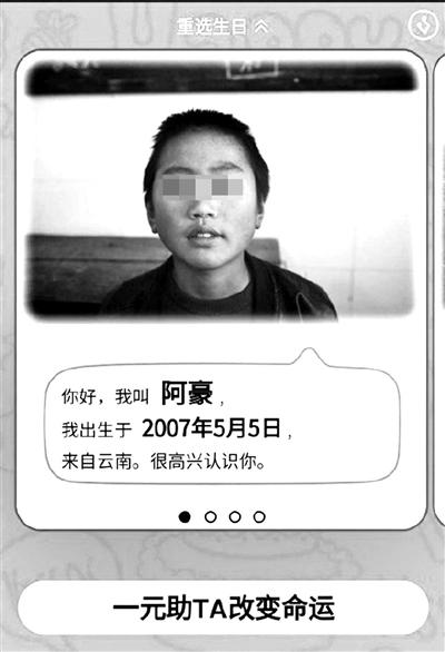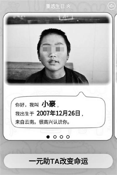 然而,很快(kuai)有網(wang)友“曬(shai)”出了這(zhe)個(ge)活動的疑點(dian):在(zai)5月5日(ri)出生的受(shou)助(zhu)人(ren)顯示為“阿豪,出生于2007年(nian)”,同一張照片也在(zai)12月26日(ri)的受(shou)助(zhu)人(ren)一欄中(zhong)出現,姓名變成了“小豪”。