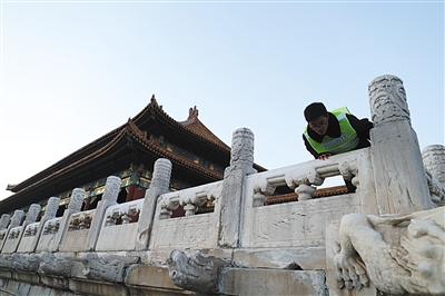單霽翔(xiang)此次(ci)主要檢查故宮(gong)最重要的(de)三大殿區域。昨(zuo)日(ri)下(xia)午6時(shi)許,所(suo)有檢查完畢后,一(yi)扇扇宮(gong)門關閉。(記者(zhe) 倪偉)