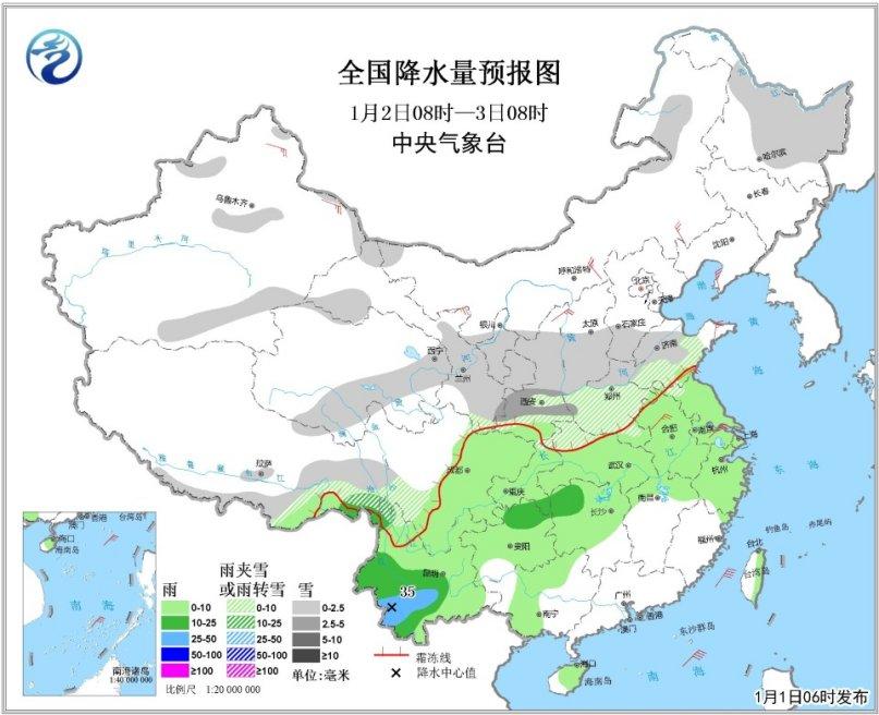 2日(ri)08時(shi)至(zhi)3日(ri)08時(shi),中東部(bu)(bu)(bu)(bu)(bu)(bu)有(you)(you)大(da)范(fan)圍雨雪天氣(qi)。西(xi)(xi)藏(zang)東部(bu)(bu)(bu)(bu)(bu)(bu)、青海東部(bu)(bu)(bu)(bu)(bu)(bu)和南(nan)(nan)(nan)(nan)部(bu)(bu)(bu)(bu)(bu)(bu)、西(xi)(xi)北地(di)區(qu)東部(bu)(bu)(bu)(bu)(bu)(bu)、華(hua)北南(nan)(nan)(nan)(nan)部(bu)(bu)(bu)(bu)(bu)(bu)、黃淮大(da)部(bu)(bu)(bu)(bu)(bu)(bu)等(deng)地(di)有(you)(you)小到中雪或雨夾雪;西(xi)(xi)南(nan)(nan)(nan)(nan)地(di)區(qu)大(da)部(bu)(bu)(bu)(bu)(bu)(bu)、江(jiang)漢、黃淮東南(nan)(nan)(nan)(nan)部(bu)(bu)(bu)(bu)(bu)(bu)、江(jiang)淮、江(jiang)南(nan)(nan)(nan)(nan)北部(bu)(bu)(bu)(bu)(bu)(bu)、廣西(xi)(xi)西(xi)(xi)部(bu)(bu)(bu)(bu)(bu)(bu)等(deng)地(di)有(you)(you)小到中雨,其中云南(nan)(nan)(nan)(nan)西(xi)(xi)南(nan)(nan)(nan)(nan)部(bu)(bu)(bu)(bu)(bu)(bu)的部(bu)(bu)(bu)(bu)(bu)(bu)分地(di)區(qu)有(you)(you)大(da)雨;內蒙(meng)古中西(xi)(xi)部(bu)(bu)(bu)(bu)(bu)(bu)、遼東半島、黃淮東部(bu)(bu)(bu)(bu)(bu)(bu)、江(jiang)淮東部(bu)(bu)(bu)(bu)(bu)(bu)等(deng)地(di)有(you)(you)4~6級(ji)(ji)風(feng)。南(nan)(nan)(nan)(nan)海東部(bu)(bu)(bu)(bu)(bu)(bu)有(you)(you)6~8級(ji)(ji)、陣風(feng)9~10級(ji)(ji)大(da)風(feng)。