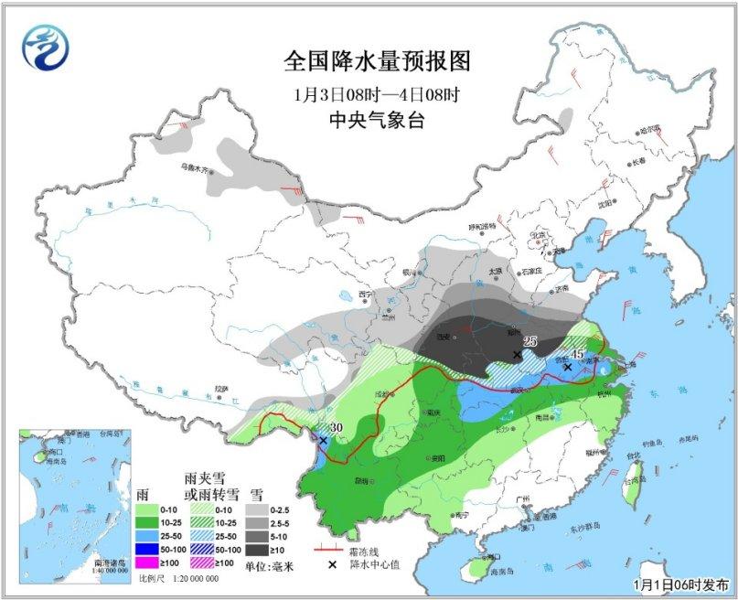 2-4日,中(zhong)國中(zhong)東部(bu)大(da)部(bu)地(di)(di)(di)(di)區(qu)將出現一(yi)次大(da)范圍雨雪(xue)天氣過程,西北(bei)(bei)(bei)地(di)(di)(di)(di)區(qu)東部(bu)、華北(bei)(bei)(bei)南部(bu)、黃淮(huai)、江(jiang)漢北(bei)(bei)(bei)部(bu)等地(di)(di)(di)(di)有(you)(you)(you)中(zhong)到大(da)雪(xue),其中(zhong),陜西中(zhong)南部(bu)、河南、湖北(bei)(bei)(bei)北(bei)(bei)(bei)部(bu)、蘇皖北(bei)(bei)(bei)部(bu)等地(di)(di)(di)(di)的部(bu)分(fen)地(di)(di)(di)(di)區(qu)有(you)(you)(you)暴(bao)雪(xue),局地(di)(di)(di)(di)大(da)暴(bao)雪(xue);西南地(di)(di)(di)(di)區(qu)東部(bu)、江(jiang)淮(huai)、江(jiang)南北(bei)(bei)(bei)部(bu)等地(di)(di)(di)(di)部(bu)分(fen)地(di)(di)(di)(di)區(qu)有(you)(you)(you)中(zhong)到大(da)雨。