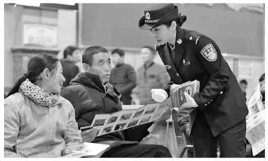 圖為警方在火車站向旅客宣講春運安全注意事項。本報通訊員 張鑫 方亮攝