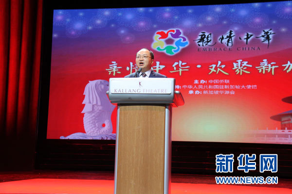 中(zhong)(zhong)國(guo)駐新(xin)加坡使館臨時代辦房新(xin)文在致(zhi)辭中(zhong)(zhong)表示,“親情(qing)中(zhong)(zhong)華”藝術團千里迢迢來(lai)到(dao)新(xin)加坡,為我們(men)帶(dai)來(lai)精彩的(de)藝術盛宴和(he)美(mei)好祝福,增進了中(zhong)(zhong)新(xin)兩國(guo)人民(min)的(de)情(qing)誼,增強了中(zhong)(zhong)新(xin)兩國(guo)文化(hua)交流(liu)的(de)活力。