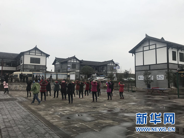 村民們在會龍村廣場跳起了歡快的廣場舞。 新華網 張世祥 攝