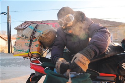 1月25日,在黑龍江省牡丹江市林口縣柳樹鎮長嶺村,郵遞員高山整理快遞包裹。張春祥攝 新華社發