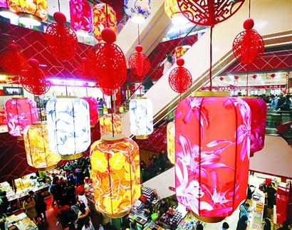南京路一商店內彩燈高掛,市民喜氣洋洋置辦年貨,一派歡樂景象。記者 邵劍平 攝