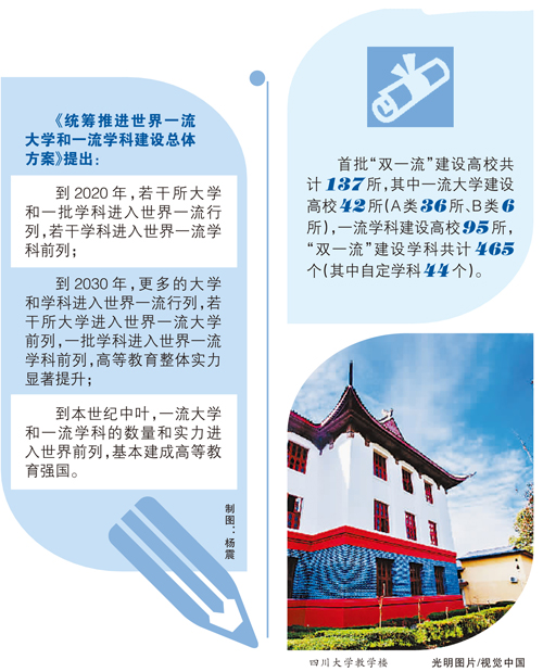 自(zi)2015年(nian)中(zhong)央(yang)全面深(shen)化(hua)改革領導小組會議審議通過《統籌推(tui)進世界一流(liu)大(da)(da)學和一流(liu)學科(ke)建(jian)設總體方案(an)》以來(lai),“雙(shuang)(shuang)一流(liu)”一直(zhi)是牽(qian)動眾多(duo)高(gao)校目(mu)光的(de)關鍵詞(ci):2017年(nian)9月,“雙(shuang)(shuang)一流(liu)”建(jian)設名單公布(bu);2017年(nian)歲末,眾多(duo)入選高(gao)校紛紛公布(bu)自(zi)己的(de)一流(liu)大(da)(da)學建(jian)設方案(an),“雙(shuang)(shuang)一流(liu)”建(jian)設正(zheng)式(shi)破土動工;今年(nian)政(zheng)府工作報告提出(chu),以經濟社會發展需要(yao)為導向,優化(hua)高(gao)等教育結構,加快“雙(shuang)(shuang)一流(liu)”建(jian)設,支持中(zhong)西部(bu)建(jian)設有特色、高(gao)水(shui)平大(da)(da)學。