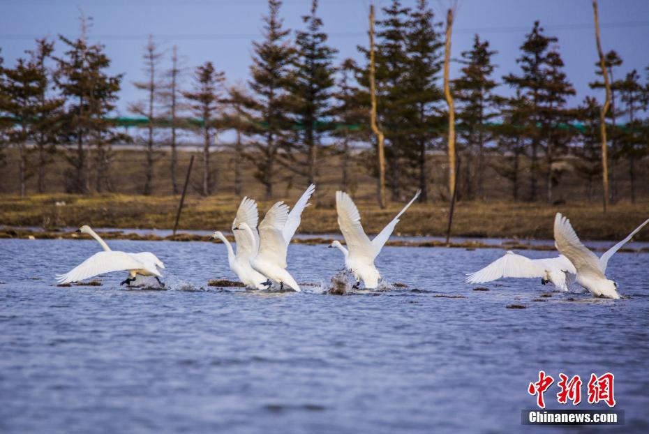 3月(yue)20日,天鵝在湖面上“舞蹈”。日前,內(nei)蒙(meng)古自治區呼(hu)倫貝爾(er)市(shi)陳(chen)巴爾(er)虎旗陸續迎(ying)來(lai)大量北歸天鵝。據(ju)了解,每(mei)年四月(yue)份,成群的天鵝從中(zhong)國南方遷徙(xi)到呼(hu)倫貝爾(er)產(chan)卵(luan)繁殖(zhi),而今年三月(yue)中(zhong)旬起,陳(chen)巴爾(er)虎旗境內(nei)便(bian)迎(ying)來(lai)大量回歸天鵝,實屬罕見。中(zhong)新社記(ji)者 武軍 攝(she)