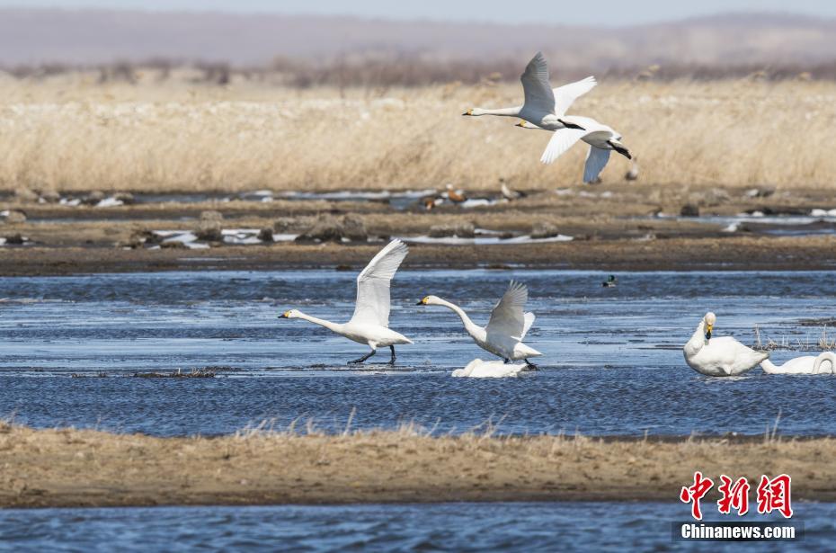 3月(yue)20日,天(tian)(tian)鵝在湖面上嬉戲。日前(qian),內(nei)蒙古自(zi)治(zhi)區呼倫貝爾(er)市陳巴爾(er)虎(hu)旗(qi)陸續迎(ying)來大量(liang)北歸(gui)天(tian)(tian)鵝。據了解,每年(nian)(nian)四月(yue)份,成群的天(tian)(tian)鵝從中(zhong)(zhong)國(guo)南方遷徙(xi)到呼倫貝爾(er)產(chan)卵(luan)繁殖,而今年(nian)(nian)三月(yue)中(zhong)(zhong)旬起(qi),陳巴爾(er)虎(hu)旗(qi)境內(nei)便迎(ying)來大量(liang)回歸(gui)天(tian)(tian)鵝,實屬罕(han)見。中(zhong)(zhong)新社記者(zhe) 武軍 攝(she)