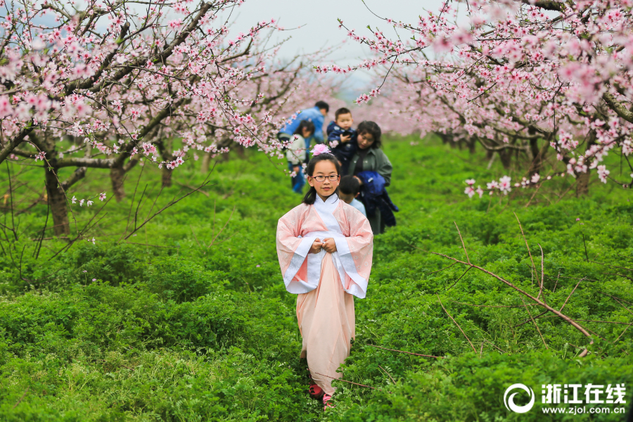 3月25日,身(shen)穿古裝的(de)小朋友(you)在浙江省寧波市橫溪鎮生態農業園(yuan)內游玩。