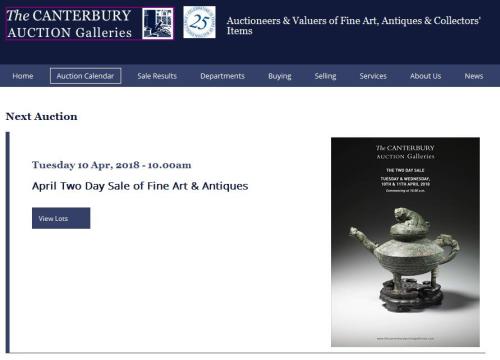 記者注意到,這件“虎鎣”出現在英國坎特伯雷拍賣廊拍賣日程表中。網頁顯示,這場拍賣會將于4月在當地開拍。