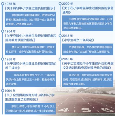 為什么會這樣?其(qi)實,自1955年7月教育部發出新中(zhong)(zhong)國第(di)一(yi)個“減負(fu)令”——《關于(yu)減輕中(zhong)(zhong)小學生(sheng)過重負(fu)擔(dan)的指示(shi)》以(yi)來,60余年間我(wo)國中(zhong)(zhong)央(yang)及(ji)地方相關部門出臺的學生(sheng)“減負(fu)令”多達上百道(dao),圍繞學習時間、考核方式、教材內容、課(ke)外活(huo)動、教師水平、學校(xiao)領導等方面做出了(le)一(yi)系列(lie)細致嚴謹(jin)的規定。