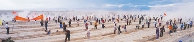 1990年3月,阿克蘇各族干部群眾在柯柯牙參加義務植樹大會戰。馬戰峰攝