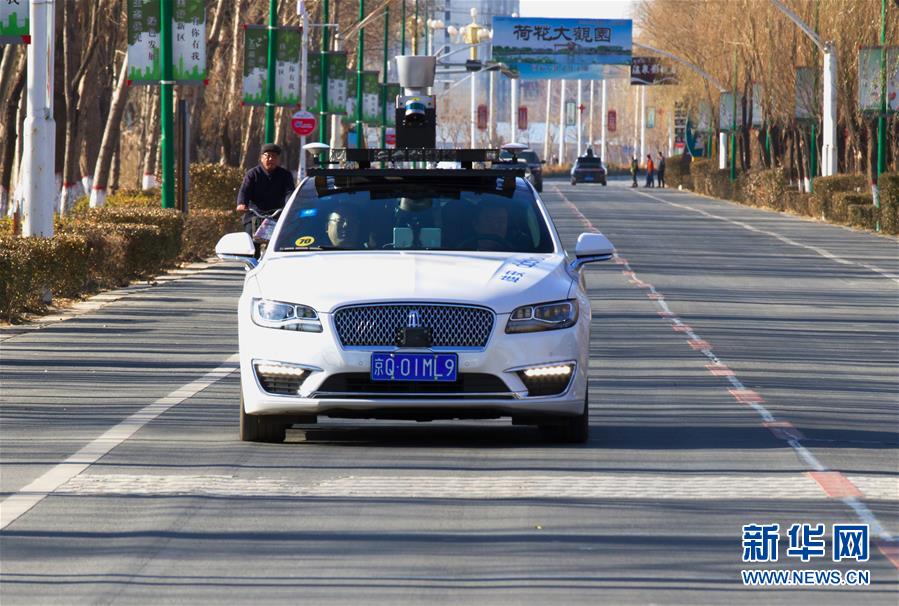 一輛百度Apollo自動駕駛車輛在雄安新區進行載人路測(2017年12月20日攝)。新華社記者 楊世堯 攝