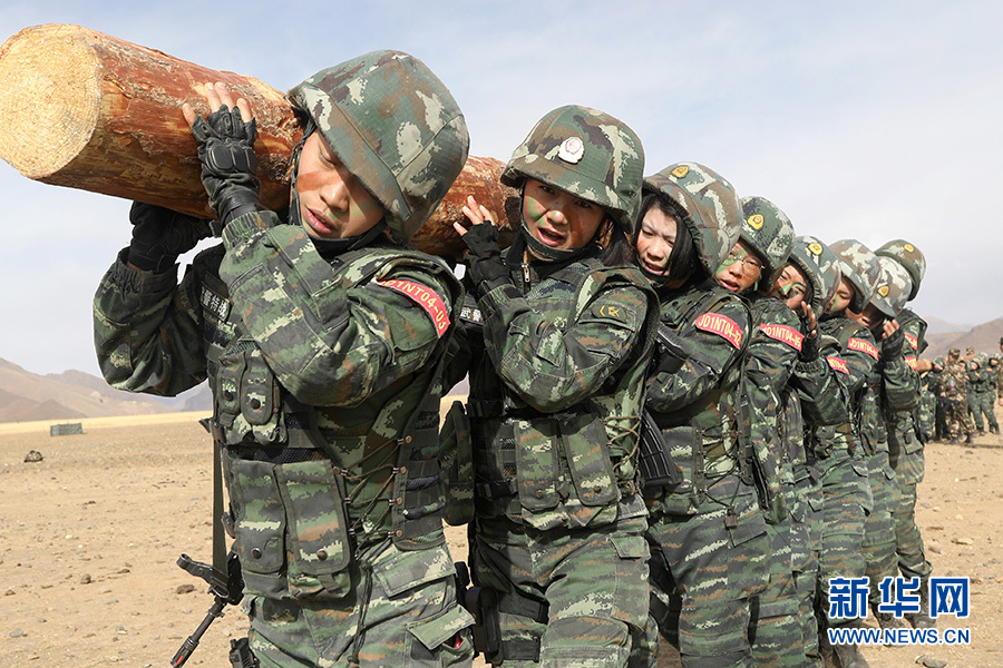 這是特戰隊員扛(kang)圓木進(jin)行極限體能訓練。新華網發 余文彬 攝