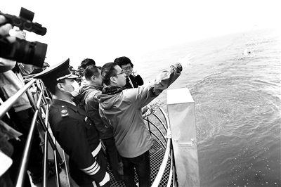 昨天上午的(de)天津港(gang)略有朦朧薄霧,好似淡(dan)淡(dan)的(de)憂傷籠(long)罩在“國(guo)(guo)賓9號”的(de)周圍。9時許,第一(yi)批從北(bei)京出發的(de)骨灰(hui)撒海(hai)車隊抵達(da)天津港(gang)國(guo)(guo)際郵(you)輪(lun)母(mu)港(gang)碼(ma)頭,140多位(wei)逝者親屬相(xiang)互攙(chan)扶,依次登(deng)上了“國(guo)(guo)賓9號”客(ke)輪(lun),在他們的(de)身后(hou)一(yi)起(qi)“登(deng)船(chuan)”的(de)是30多份逝者骨灰(hui)。黑底(di)白字的(de)“國(guo)(guo)賓9號”標牌掛(gua)在船(chuan)舷的(de)醒目位(wei)置(zhi)(zhi),船(chuan)尾的(de)位(wei)置(zhi)(zhi)是一(yi)片比正常客(ke)輪(lun)更大的(de)甲板,二層(ceng)的(de)欄桿(gan)上掛(gua)著4個(ge)白色的(de)花圈,上面寫著“魂歸(gui)大海(hai)”4個(ge)字,讓整艘船(chuan)顯得十分莊重。