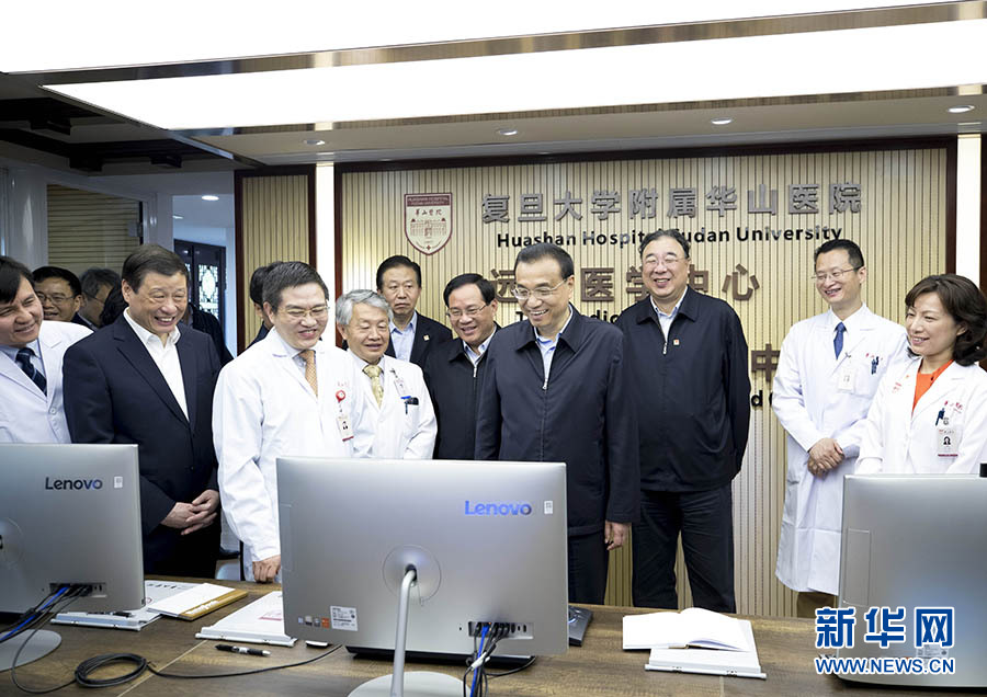 李(li)克(ke)(ke)強(qiang)來到(dao)華山醫(yi)(yi)(yi)(yi)院,通(tong)(tong)過互(hu)聯(lian)網(wang)(wang)遠程會診系統與青海果(guo)洛、云南(nan)騰沖、新(xin)疆(jiang)喀什的(de)(de)醫(yi)(yi)(yi)(yi)務(wu)人(ren)員對話,詢問還有什么(me)困難。他說,中(zhong)西(xi)(xi)部(bu)地區(qu)尤其是農村(cun)貧(pin)困地區(qu)優(you)質醫(yi)(yi)(yi)(yi)療(liao)資(zi)源(yuan)缺乏(fa),要按照(zhao)以人(ren)民為中(zhong)心的(de)(de)發展(zhan)思想的(de)(de)要求,在繼續(xu)改善(shan)中(zhong)西(xi)(xi)部(bu)地區(qu)中(zhong)心醫(yi)(yi)(yi)(yi)院檢測(ce)設施的(de)(de)同時,積(ji)極發展(zhan)“互(hu)聯(lian)網(wang)(wang)+醫(yi)(yi)(yi)(yi)療(liao)”,電信部(bu)門(men)要為此通(tong)(tong)專線、提(ti)網(wang)(wang)速,醫(yi)(yi)(yi)(yi)衛部(bu)門(men)要更大(da)發掘優(you)質醫(yi)(yi)(yi)(yi)療(liao)資(zi)源(yuan)的(de)(de)潛能,讓(rang)好(hao)醫(yi)(yi)(yi)(yi)生在中(zhong)西(xi)(xi)部(bu)基層(ceng)也能“觸屏可(ke)及”。李(li)克(ke)(ke)強(qiang)還來到(dao)徐匯區(qu)江(jiang)南(nan)新(xin)村(cun),對這里(li)實行社區(qu)醫(yi)(yi)(yi)(yi)養結合,幫助(zhu)老人(ren)們居家養老表示贊許。